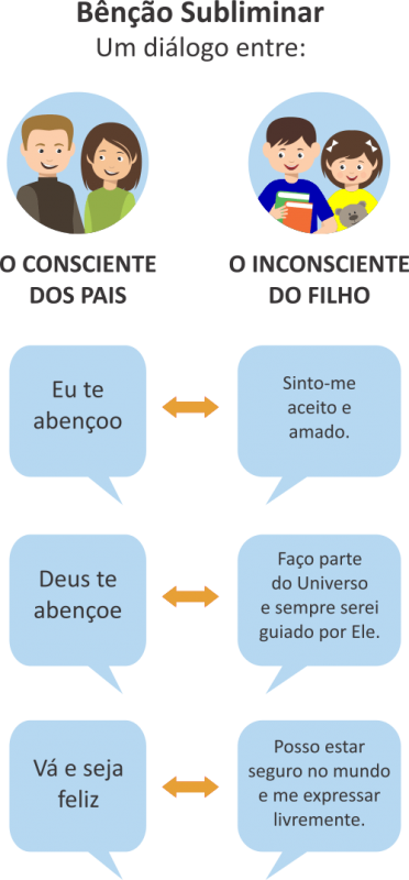 A Bênção Subliminar fala ao inconsciente, onde ali está a “criança ferida”, e minimiza ou, em alguns casos, até libera memórias de dor, através de um poder divino outorgado aos pais, quando estes abençoam seus filhos.